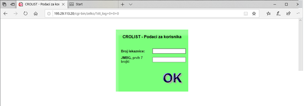 Unesite svoje podatke: broj članske iskaznice i prvih 7 brojki svojeg JMBG-a, kliknite OK, kliknite na prvu opciju: Zaduživani naslovi (primjerci), zakasnine, opomene.