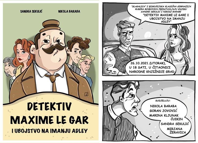 U sklopu Mjeseca hrvatske knjige, Dubrovačke knjižnice u suradnji s Društvom Slagalica i Biskupijskom klasičnom gimnazijom Ruđera Boškovića s pravom javnosti, organiziraju predstavljanje knjige ''Detektiv Maxime Le Gar i ubojstvo na imanju Adley'' koje će se održati u utorak, 26. listopada 2021., u Čitaonici Narodne knjižnice Grad s početkom u 18 sati. Radi se o priči koja je pobijedila na Slagaličinom natječaju za najbolju priču detektivsko-kriminalističke tematike koje je Društvo raspisalo za učenike dubrovačkih srednjih škola te stripa rađenog po toj priči. Autor priče je Nikola Baraba, učenik Klasične gimnazije, a autorica stripa likovna dizajnerica i ilustratorica Sandra Sekulić. Glavna urednica je Renata Zlatković. U predstavljanju sudjeluju i Goran Jovović, predsjednica Slagalice Marina Kljunak Čuikin te profesorica Mirjana Žeravica.